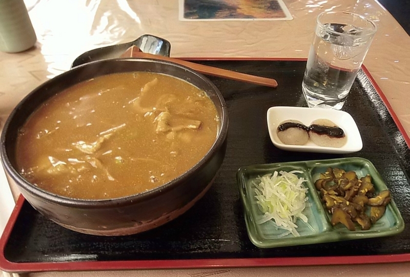 先月、大間々のやまもと屋でカレーうどんが食べたいと車で立ち寄ったところ、運悪く閉まっていた。そのあとひもかわで有名な桐生のふる川へ行ったところ、いったいどれだけ待つのだろうというくらいの行列。さすがにあきらめてソースカツ丼を食べに行った。これはこれで美味しかったのだけど、そのときに店に入ってから発見した、大間々でカレーうどんを出す店が気になっていた。